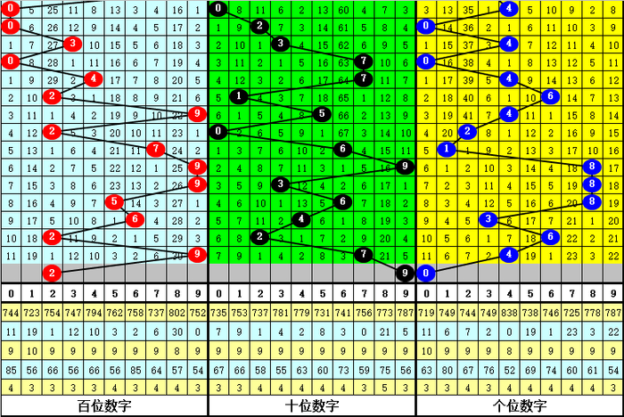 大小比推荐:排列三第099期同期号码大小比2:1→8期,1:2→7期,0:3、3:0→3期,其中大小 号码总个数比开出32:31,大小 号码开出比例基本持平,本期看好大号大热,大小比参考1:2。